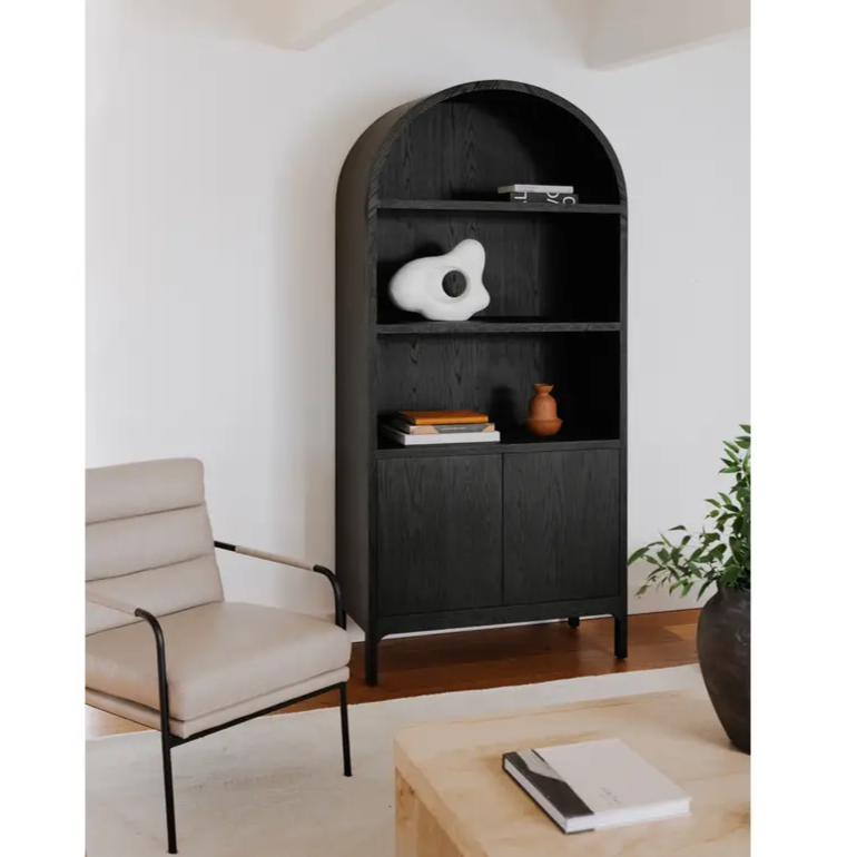An accessible design with an architectural element, the Wilde display cabinet’s arch detail and calming curves support multiple style categories. Elegance in versatility and function, open and closed storage allows for creative expression and the ability to tuck away everyday essentials.
