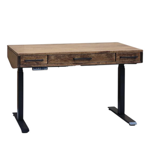 This sit-to-stand writing desk from the Lisbon collection brings modern versatility to a classic solid-wood form, letting you transition between seated and standing work with ease. Crafted with thoughtful proportions and built-in storage, its three smooth-gliding drawers keep your essentials close at hand while preserving a clean, organized surface. The height-adjustable design supports comfort throughout your day without compromising on style, making it a functional centerpiece for any home office or creative space.