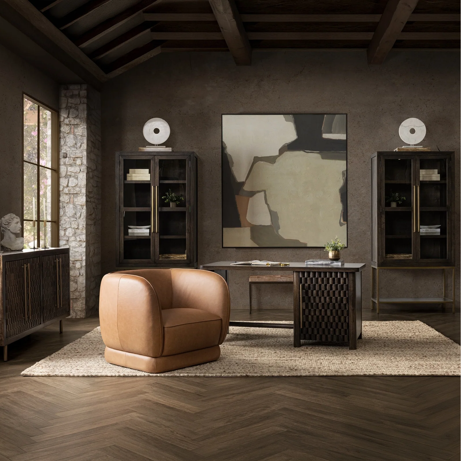 Bringing a touch of contemporary sophistication with the Norwood Collection. Made from solid mango wood, its block door pattern is complemented by brass metal detailing. Its sleek design transforms any space into a polished, modern retreat.