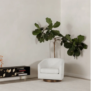 Light and cheerful. Calm and relaxed. The Oscy swivel chair is a cloud of comfort that brings airy energy and convenience into your living room with its 360° swivel, floating base design. Idyllic for a reading nook or as an accent chair, Oscy creates a chic retreat with softly textured fabric upholstery that looks fresh and keeps things cozy.