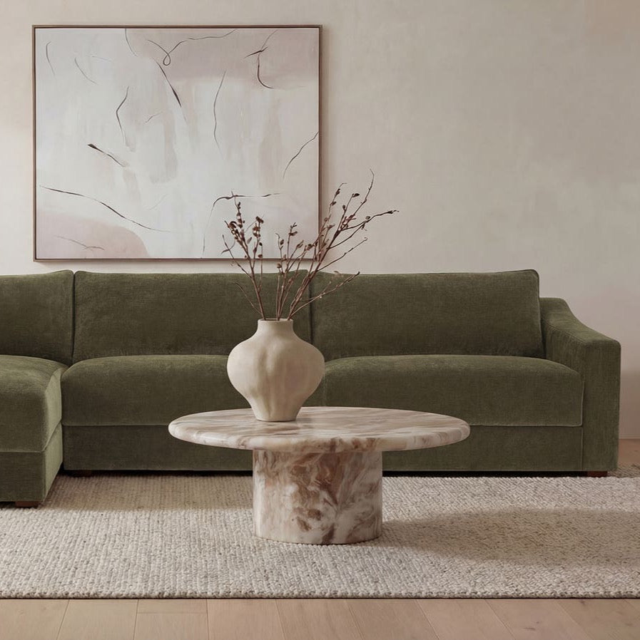 Textured, tapered, totally patio-worthy. Frida brings the look of plaster outdoors. The hand-finished concrete top has that layered, tonal look—softened by a rounded bullnose edge for a more sculptural feel. Below, a bold pedestal base keeps the silhouette clean and grounded. Sculptural, substantial, and ready for the spotlight.
