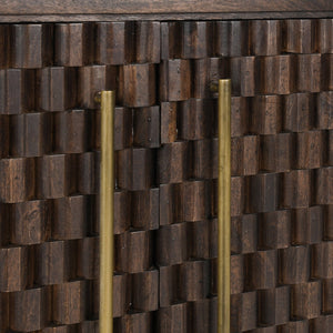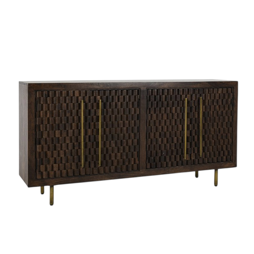 Made from hand carved mango wood, the Norwood 4Dr Buffet accentuates any room's composition. Its rich bark-brown finish, paired with gold-finished iron pull handles and legs, complements neutral and monochromatic palettes effortlessly.