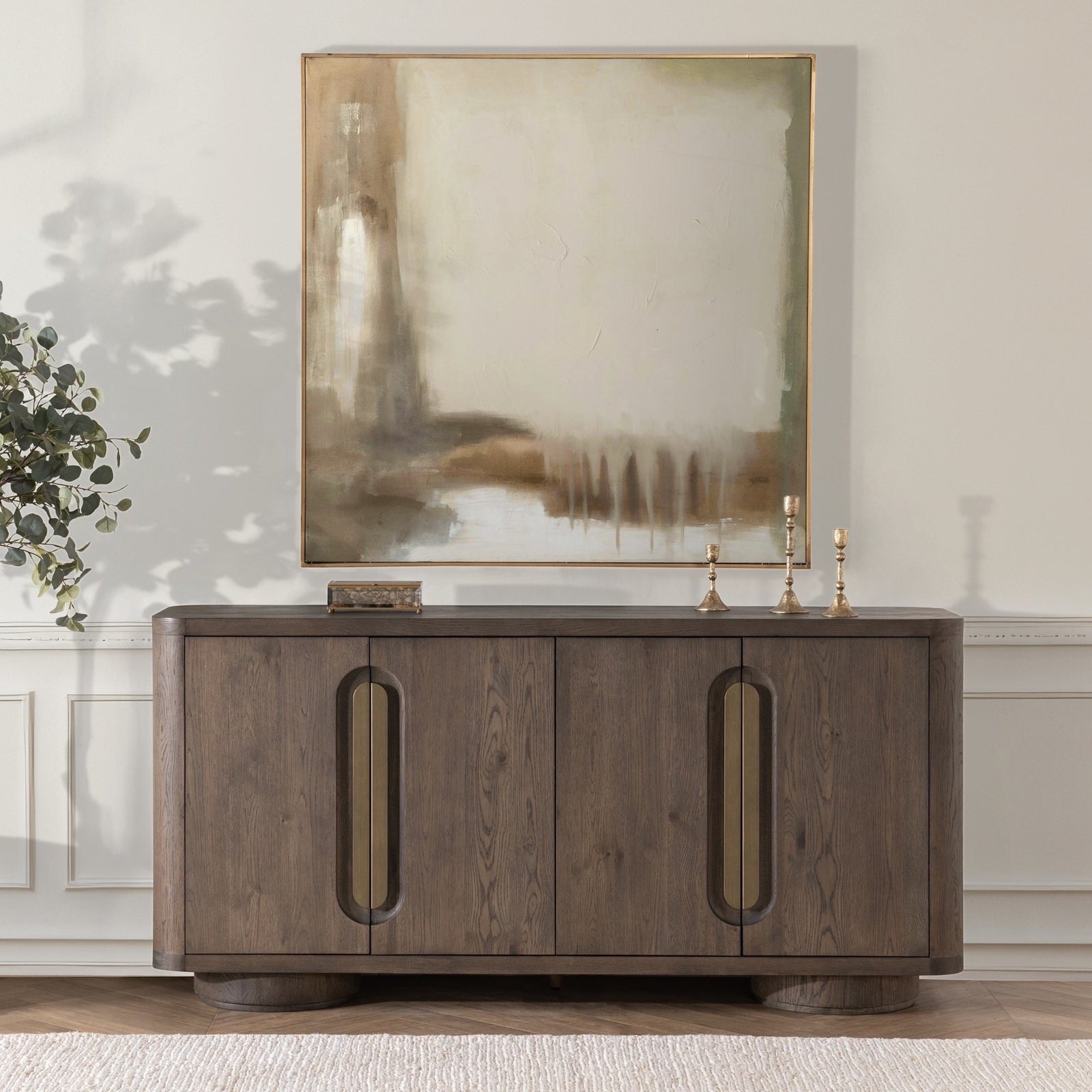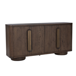 The Tiber Buffet is crafted from FSC® Certified oak veneer, showcasing round curves that add a soft, organic touch to its design. With its clean lines and natural wood finish, this buffet exudes a refined yet relaxed aesthetic, perfect for enhancing any dining or living space. Its timeless appeal combines functionality with subtle elegance, making it an ideal piece for modern interiors.