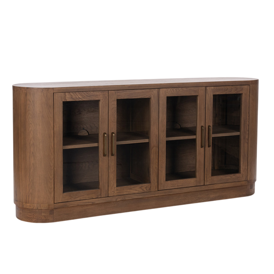 Crafted from FSC® Certified Oak Veneer, the Vander 4Dr Buffet brings timeless elegance to your dining space. Its glass doors beautifully display your cherished dinnerware while the tawny brown or cream washed finish adds warmth to your decor. A sustainable and stylish choice for modern homes.