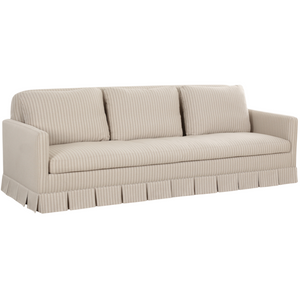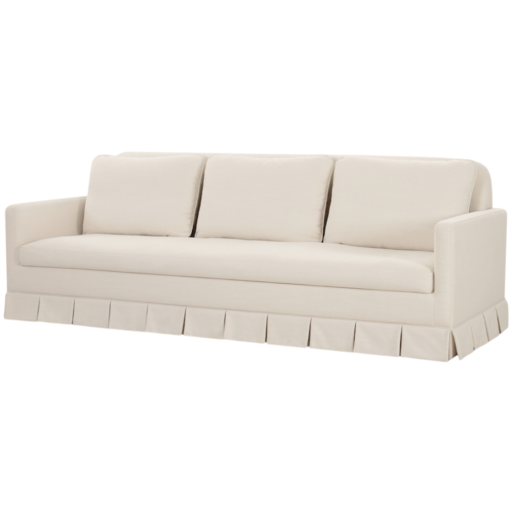 The Pellicano sofa presents a romantically skirted silhouette, artfully pleated while echoing the enchanting essence of Italy. Upholstered in a hardwearing Performance Fabric, it provides forgiveness to everyday wear while evoking the same beguiling charm as its namesake, Hotel Il Pelicano. Each curve and hue whispers tales of Italian escapades, inviting a sense of refined nostalgia with a touch of poetic grace.