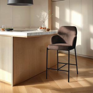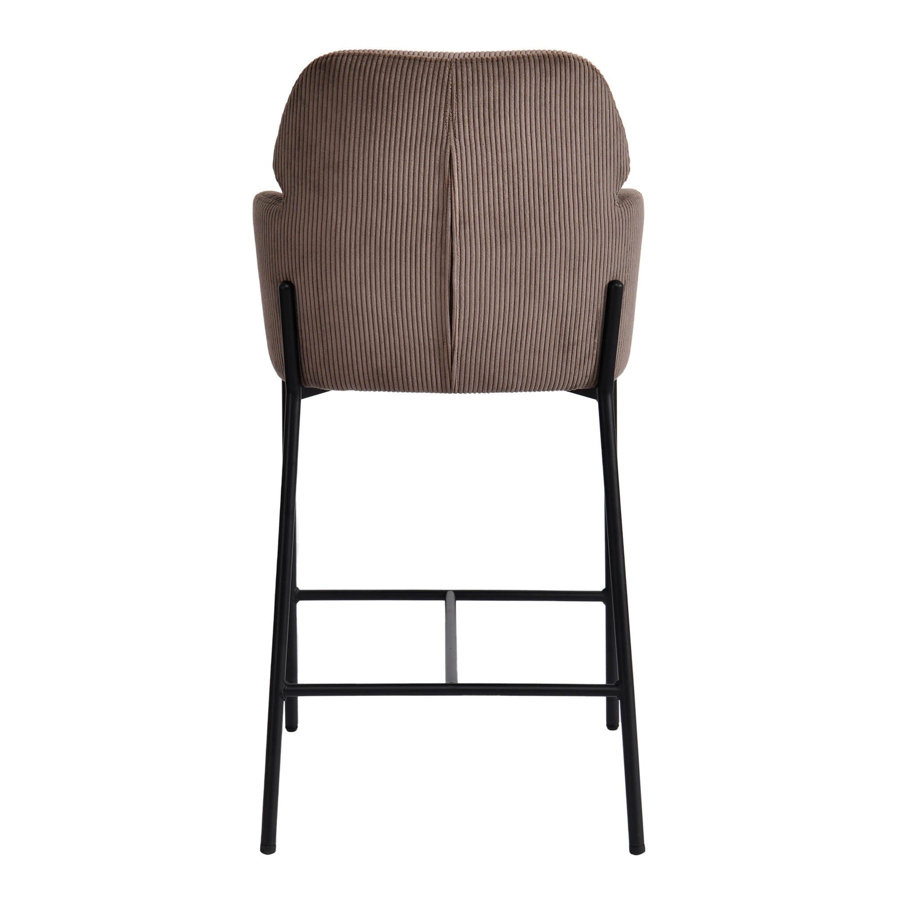 This counter stool adds a touch of sophistication and comfort to your kitchen or dining area. Featuring a foam-padded seat and backrest, it provides a cozy seating experience with stylish corduroy fabric. Supported by a sturdy plywood frame with powder-coated iron legs, this stool offers both durability and timeless appeal.